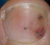 On 1st October I noticed three black dots under my right toenail. No pain or other symptoms. The night before I wore tight new shoes and had a family dinner with lots of food, beer, red wine and licors. It lasted from lunch to dinner and I wore that shoes all the time.